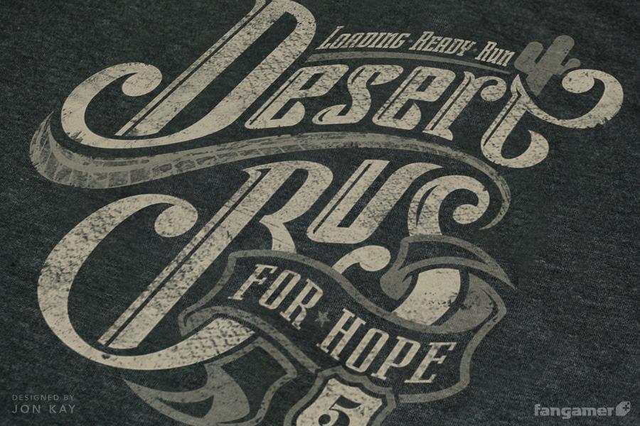 Our friends at Desert Bus are getting ready to begin their grueling marathon, so we thought we'd help them out with a little Kay-style crest work. 100% of the profits from this shirt go to Child's Play, plus an additional 10% of whatever else is in your cart. So if you buy a shirt and an E-Mug, well donate all of the profits from this shirt plus $3.20 from the E-Mug!