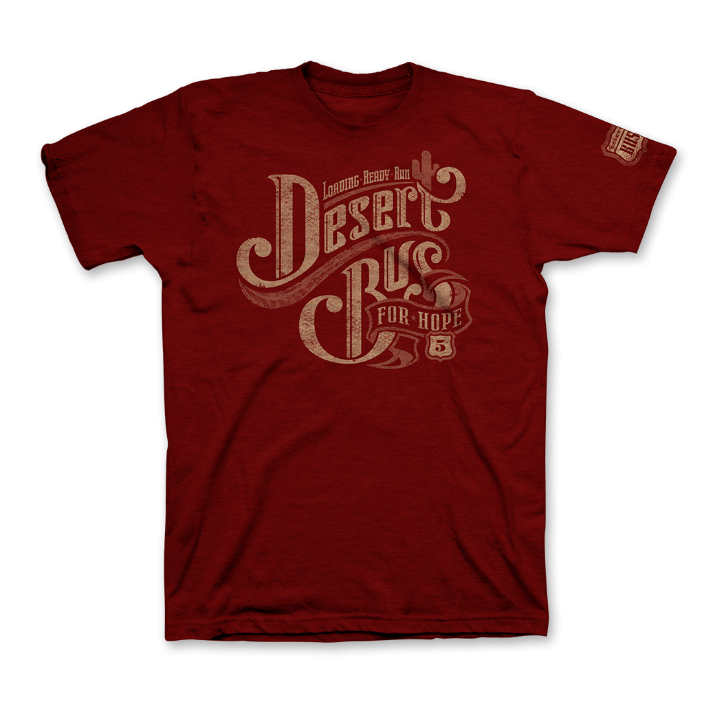 The Desert Bus 5 shirt was offered between November 12, 2011 and November 25, 2011 and 100% of the profits went to Childs Play. We do not intend to reprint this shirt (for charity or otherwise).