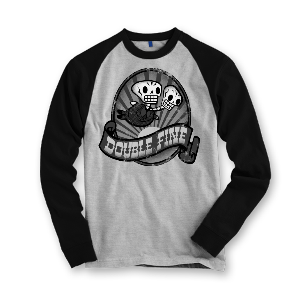 Unlike most of our shirts, this skeletal take on Double Fine's two-headed baby logo has the added benefit of covering up all of your arm-bones.