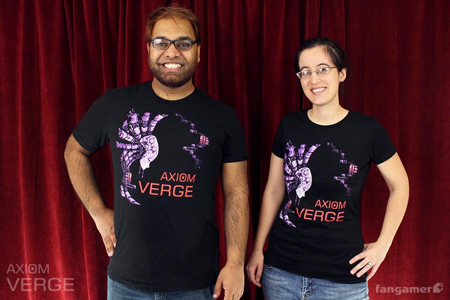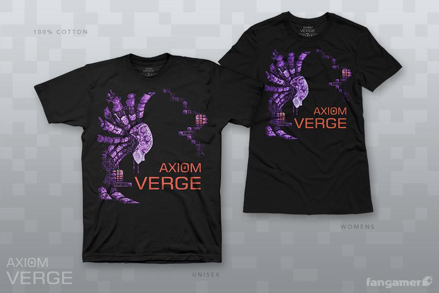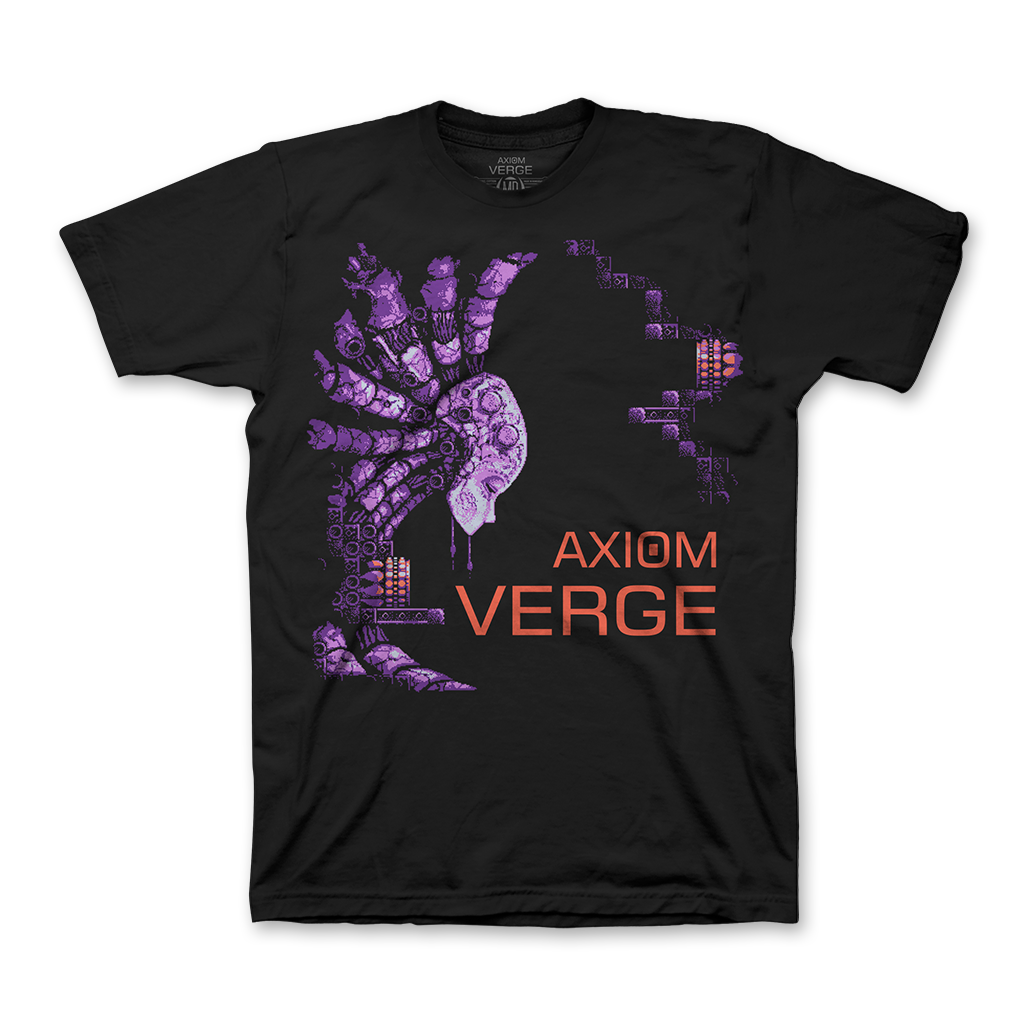 This official Axiom Verge shirt is printed on 100% cotton shirts from District and Port & Company. Each one comes with a square bonus button.