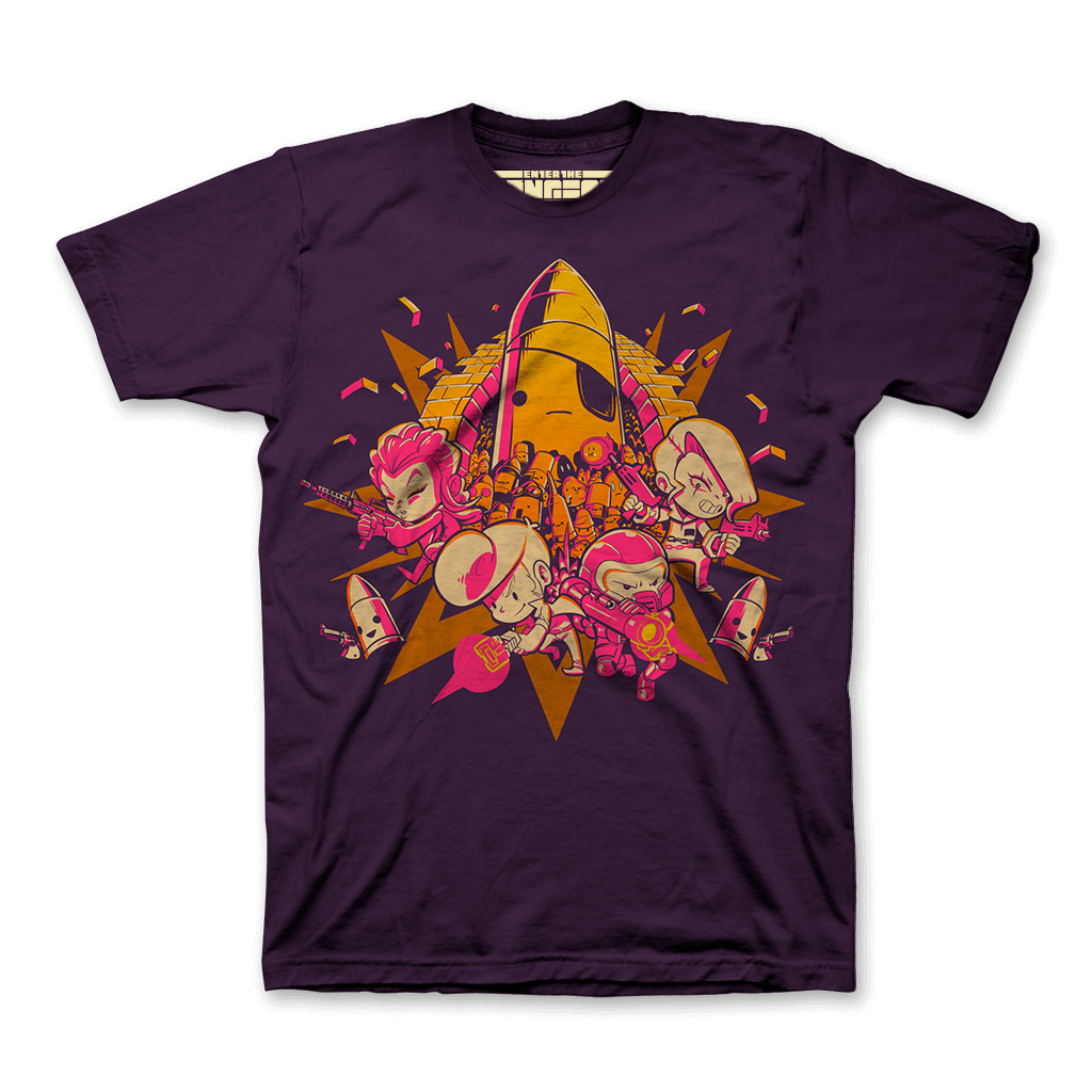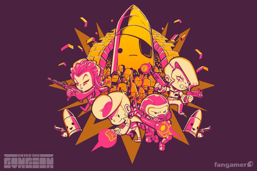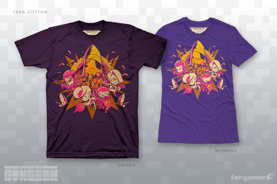 Even if you can't run, dodge, and shoot your way through bullet hell, you can wear this official Enter the Gungeon shirt, printed on soft, 100% cotton shirts from American Apparel and District.