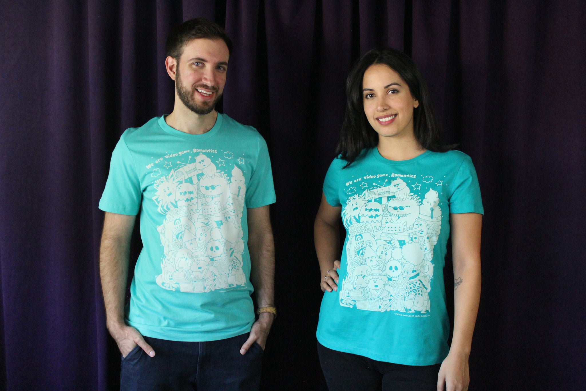This third shirt in the series, following Videogame Romantics and Legend of Romantics, Romantic's Quest is loosely inspired by a certain Miyazaki manga and is available in two colors, described by Keita below: