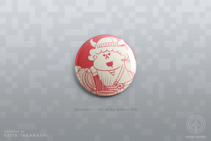 Each shirt comes with a bonus 1.25" button, about which Keita adds: "I guess the treasure was food or a sexy book."