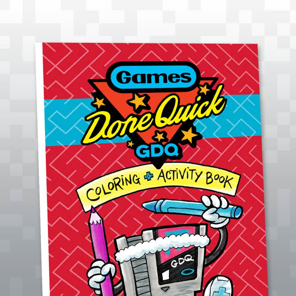 Join the speedrunning fun with the GDQ Coloring + Activity Book! This little booklet is filled with activities and coloring pages themed around classic games featured at Games Done Quick.