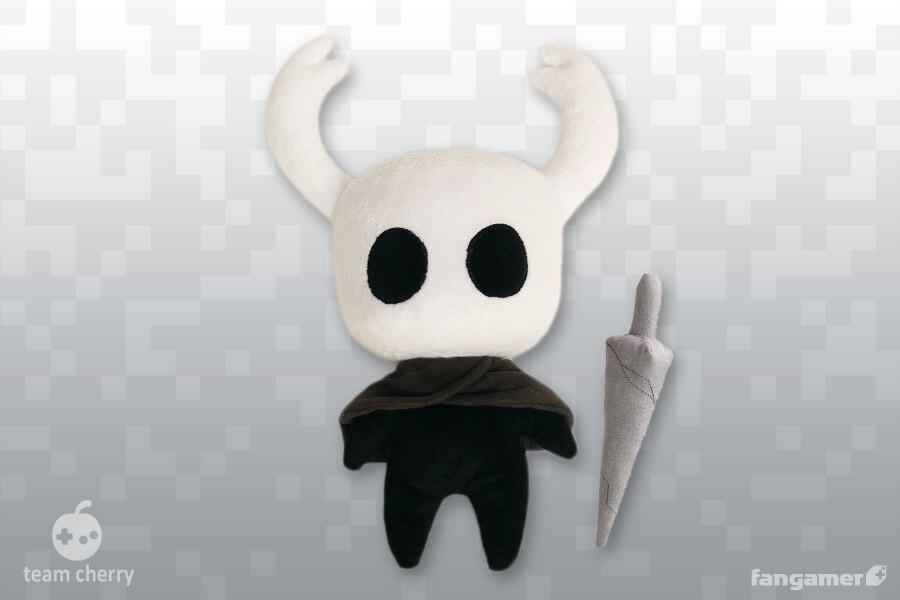 This official Hollow Knight plush was prototyped by Jenna Post and Eyes5. It stands approximately 8 inches tall. Magnets in both hands and on Hollow Knight's back make it easy to wield the Nail or keep it sheathed.