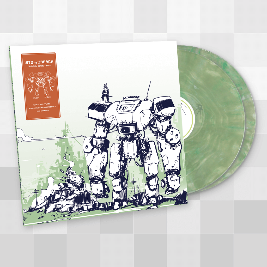 This two-LP vinyl OST contains 26 tracks from Ben Prunty's Into the Breach soundtrack on translucent, smoky green vinyl, wrapped up in art by spudonkey.