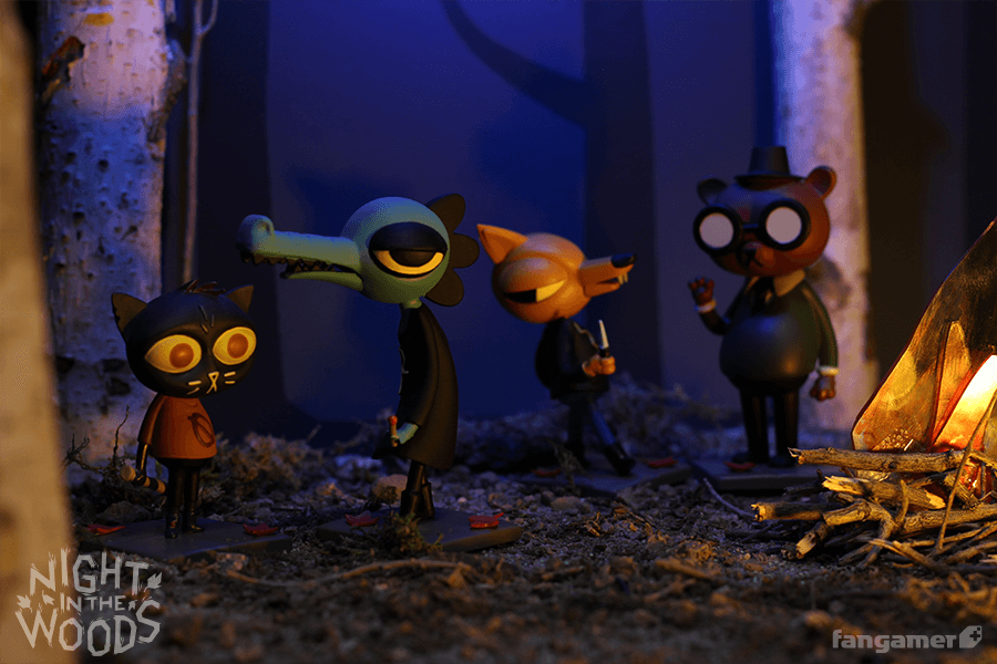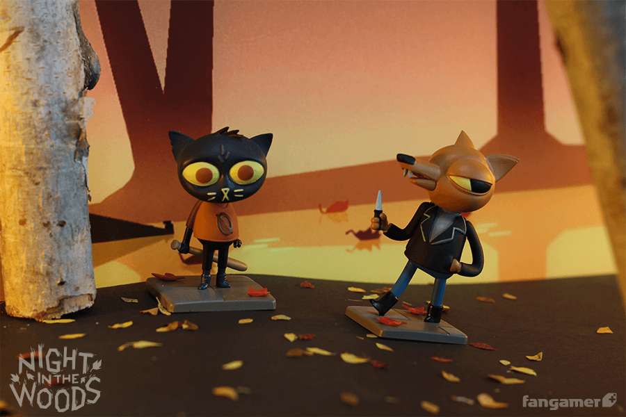 These official Night in the Woods vinyl figurines were modeled by Gijs Van Kooten. They stand between 2.5 and 3.5 inches tall.