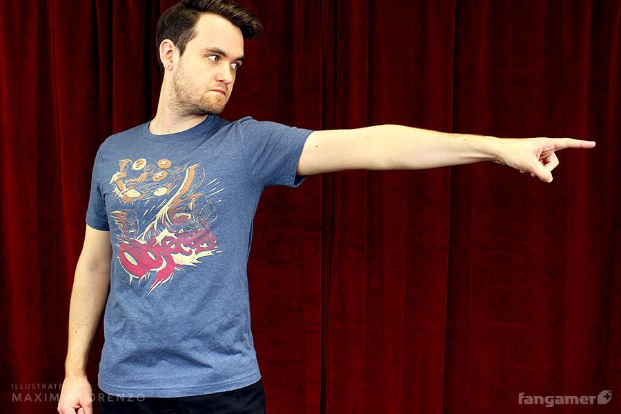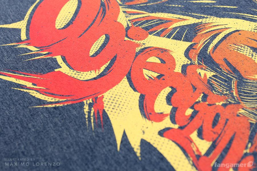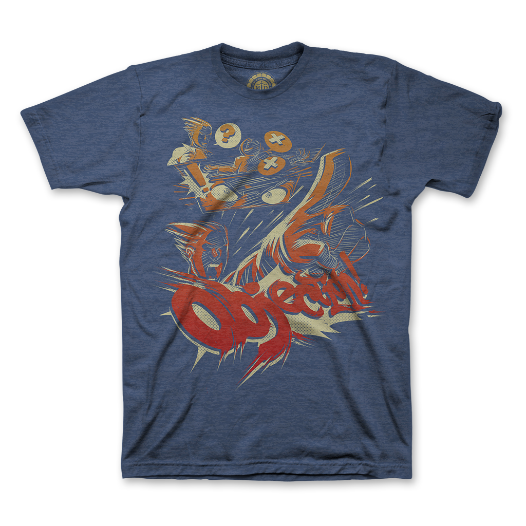 The last known whereabouts of Maximo Lorenzo's comic-book-style design was on a run of ultra-soft 50/50 shirts. Forward Printing is wanted for questioning at this time.
