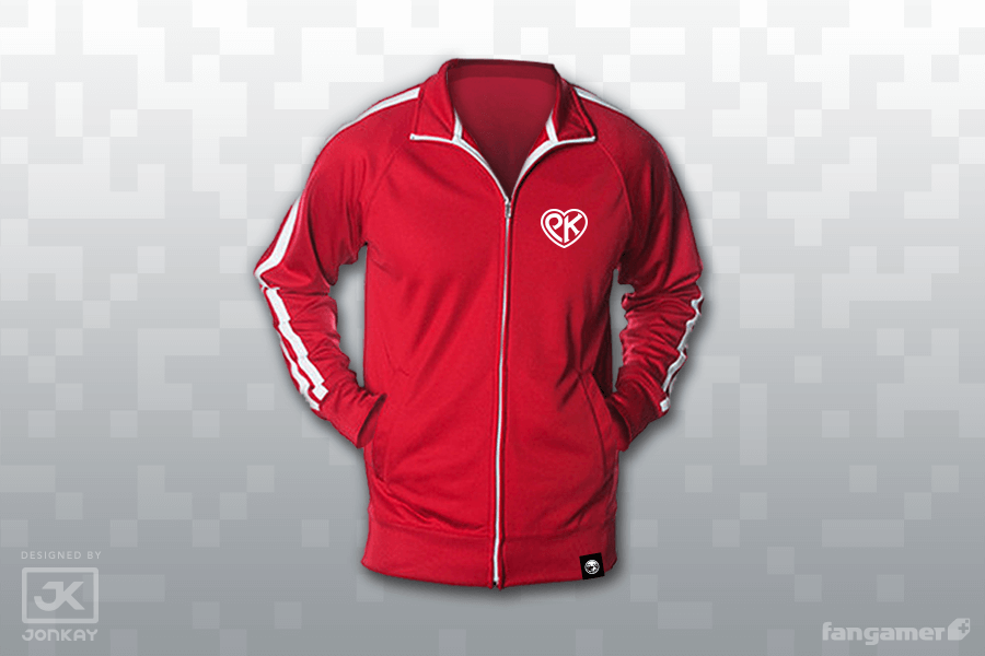 Note: By popular demand, we brought back the PK Love jacket in a limited run for Camp Fangamer 2018! The original garment was discontinued—this new one, the same we used for our Kart Crew jacket, is a little thicker and darker than the original. But it features the same embroidered design and sewn tag!