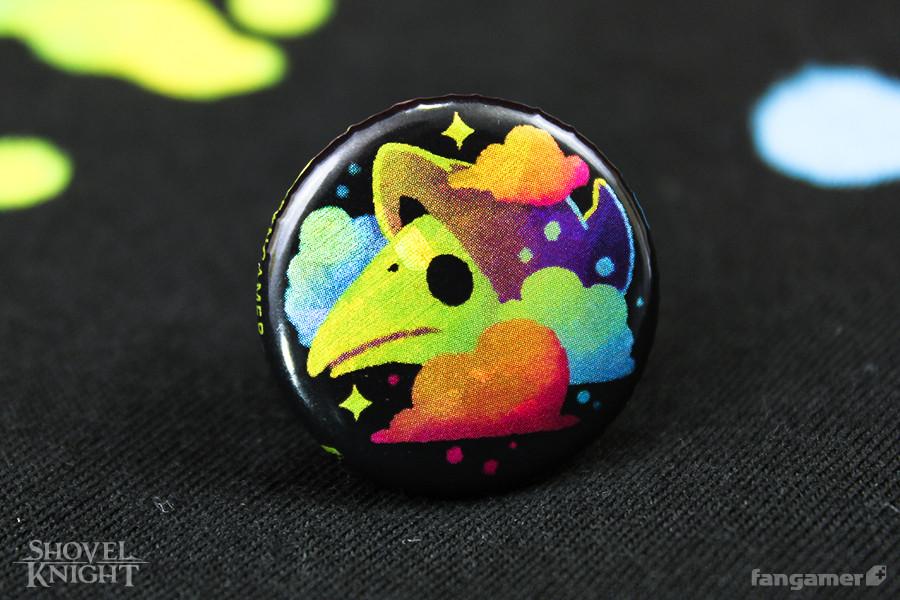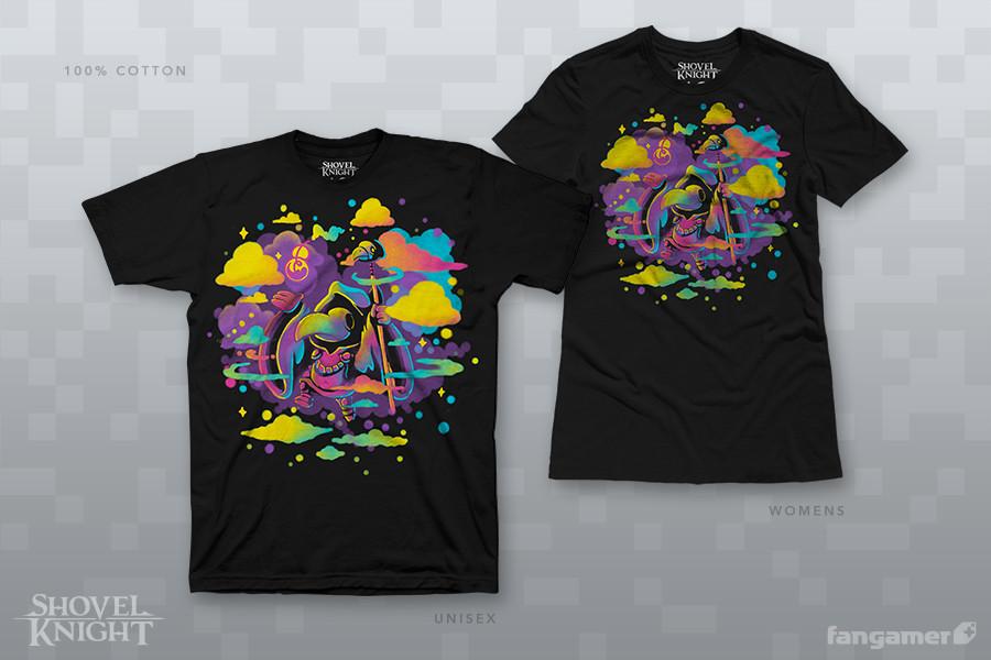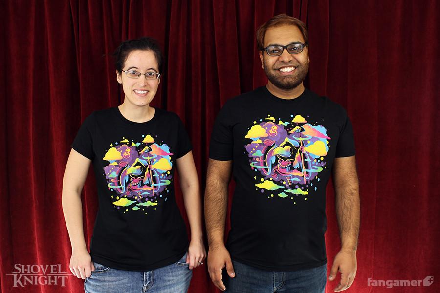 This official Shovel Knight design was concocted by Andy Webb and printed on 100% cotton shirts from District. Each one comes with a bonus button.