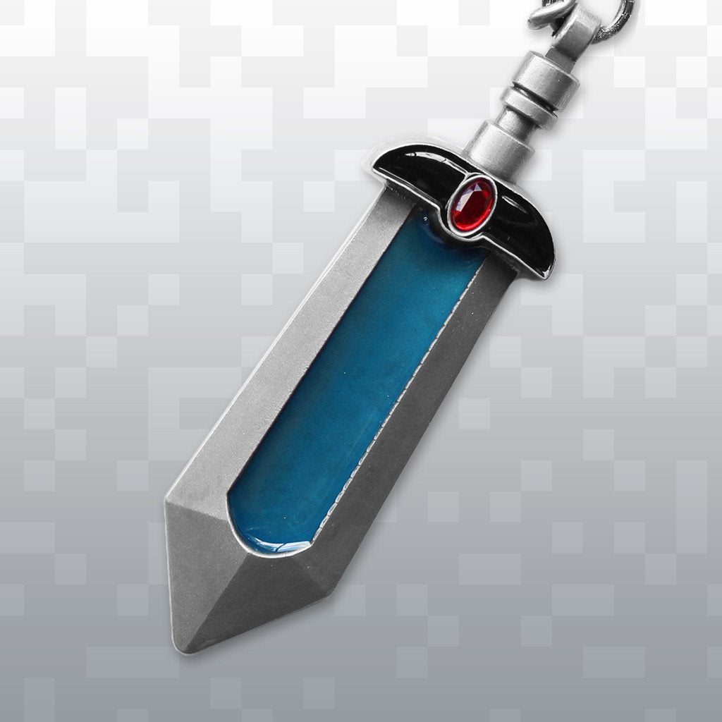 The metal sword on this official Rogue Legacy keychain is about 2.5" long. It's two-sided, so you won't have to just mirror your walking animation whenever you turn around.