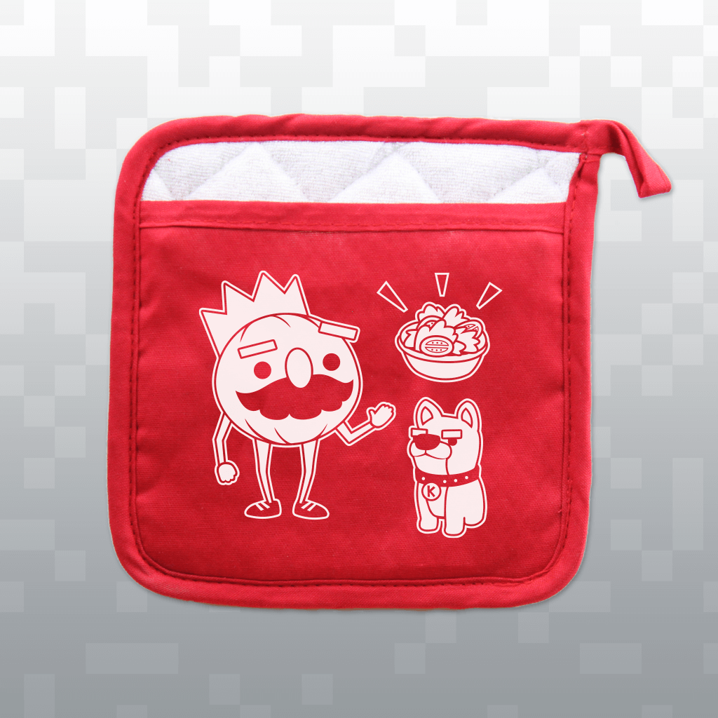 This official Overcooked potholder was designed by Yesica Furrow and measures 7x7 inches. The inner surface is made of silicone.