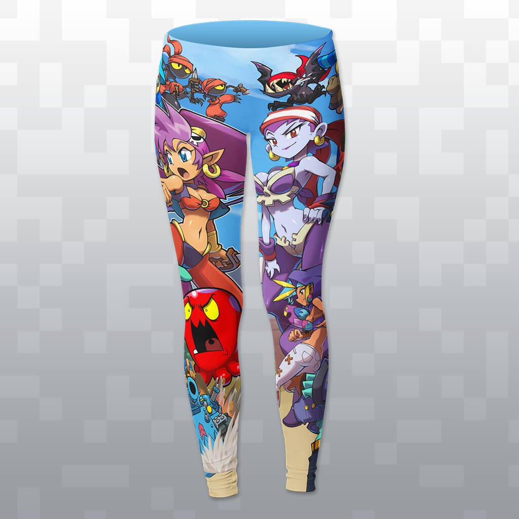 These official Shantae leggings are made of an 85% polyester, 15% spandex blend.