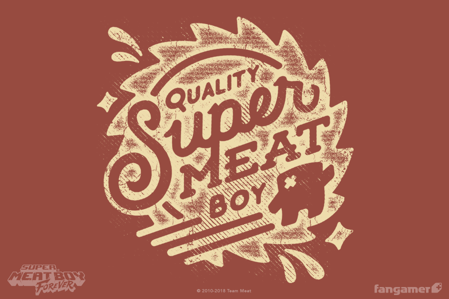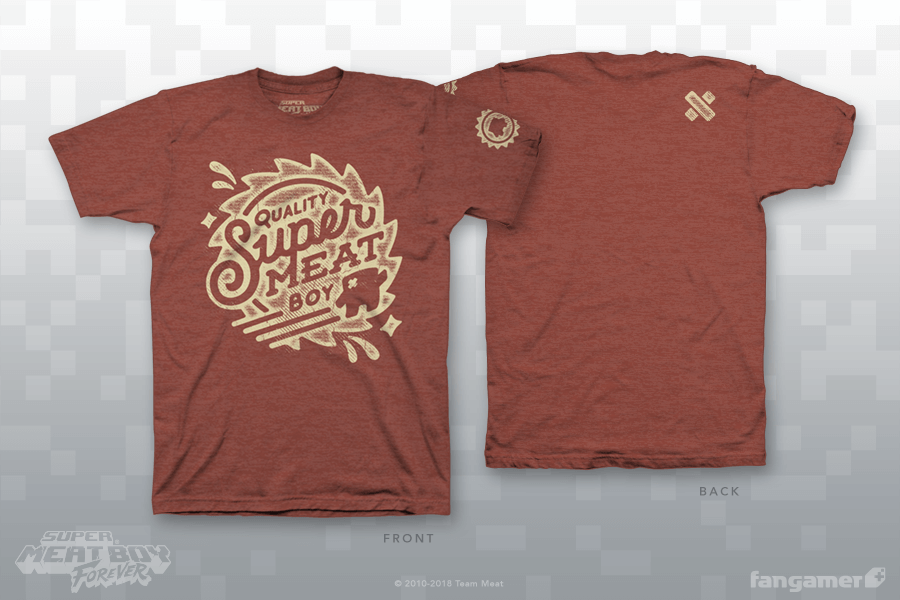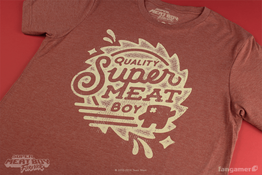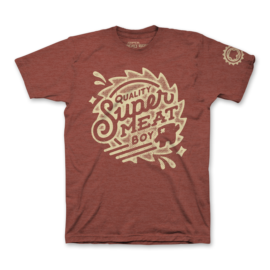 This official Super Meat Boy shirt was designed by Jon Kay and features three print locations. It's printed on soft poly-cotton shirts from Canvas (5X and 6X are 100% cotton). Each one comes with a bonus sticker.