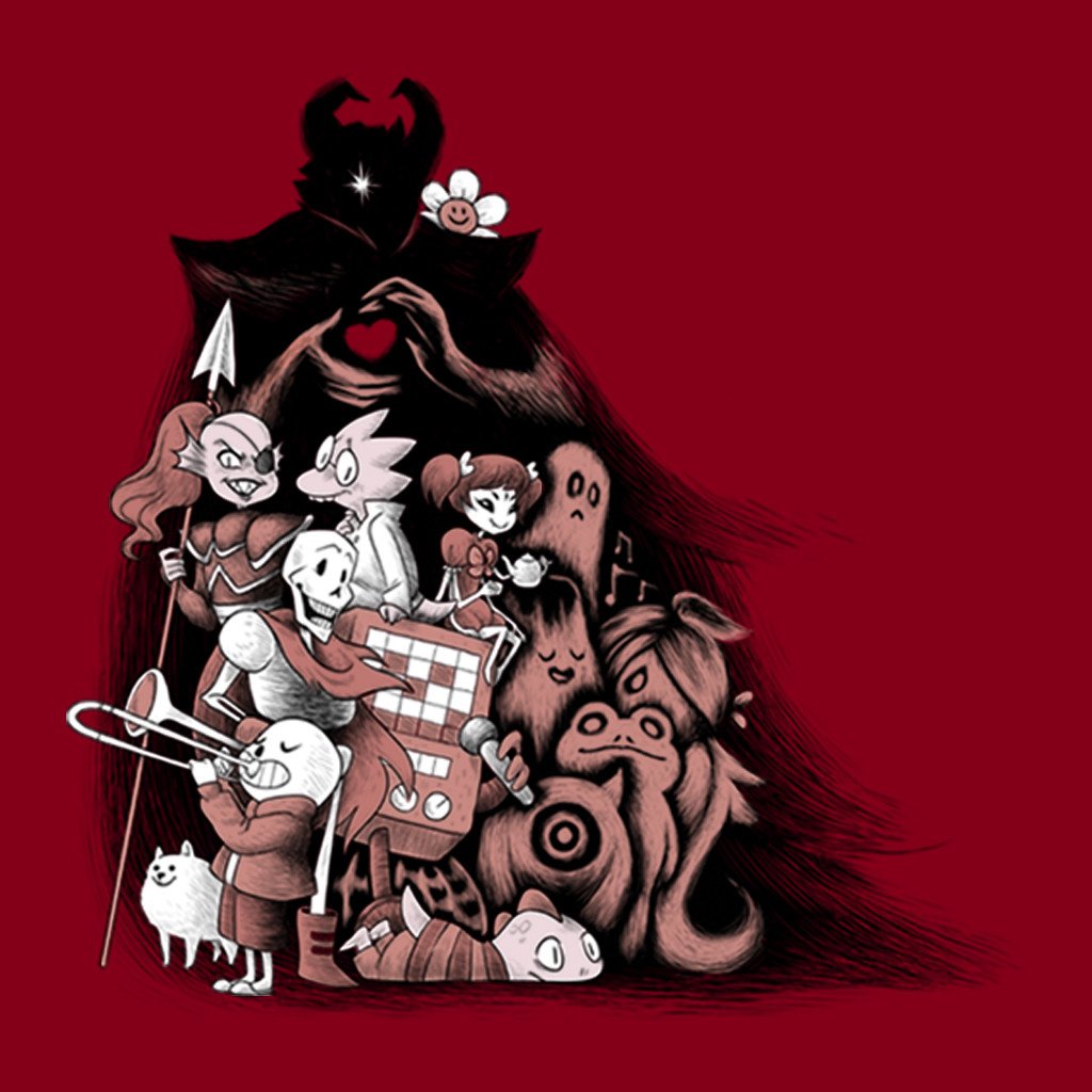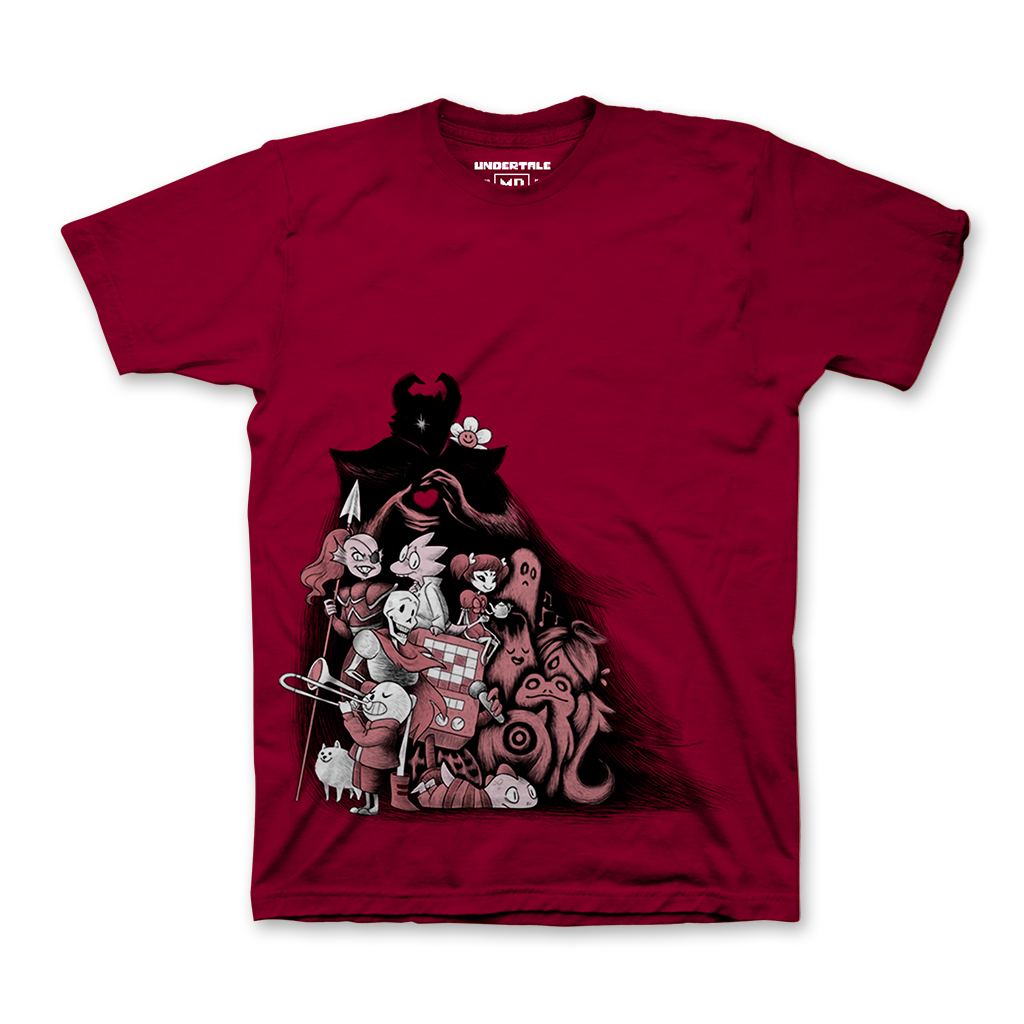 This official UNDERTALE shirt was designed by Laura Verdin and printed on soft, 100% cotton shirts from American Apparel and District. (The women's cut is a v-neck.) Each one comes with a glow in the dark button.