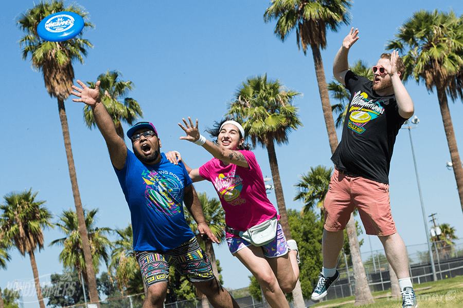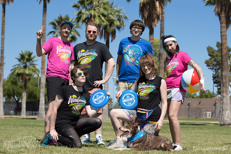 This official Windjammers shirt was designed by Nina Matsumoto, erstwhile contender for Flying Power Disc Team Canada. Forward Printing made sure the colors stayed beach-appropriate while keeping the inks lightweight, so that it won't feel like you're running in sand unless that's exactly what you're doing.